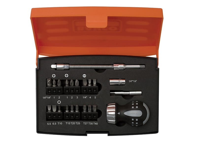 The Bahco 808050S-22 Stubby Ratchet Screwdriver Set is a compact 18-piece set and is ideal for all small screwdriving applications and is suitable for both trade professionals to DIY’ers. It is a great addition to any professional or DIY enthusiasts tool box, and is stored in a bright, easy to see, hard plastic case with foam inlay to hold all parts securely in their desired location.