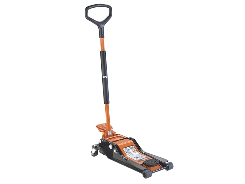 The Bahco BH12000 Extra Low Jack has an extra large round shaped foot pedal for quick approach, making it safe and comfortable to use. Dual pistons decrease the number of necessary strokes by 50%. A dust cover protects the pistons and spring, reducing the risk of damage caused by dust and dirt.