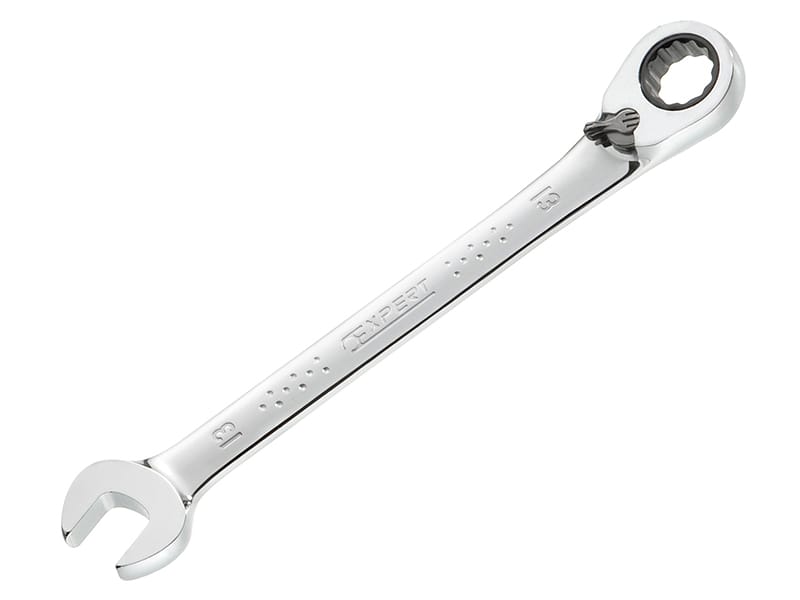 The Expert by Facom Ratchet Combination Spanners have a 5° ratcheting head and a 12-point OGV® ring end, which is angled at 15° from the handle axis (increment angle 30°).