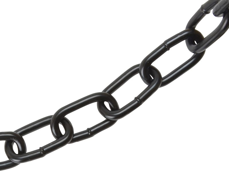 These Faithfull Welded Chains are manufactured from a mild steel with a Black Japanned finish. These chains are load tested, but not certified and should never be used for any overhead lifting, load binding or towing applications.
