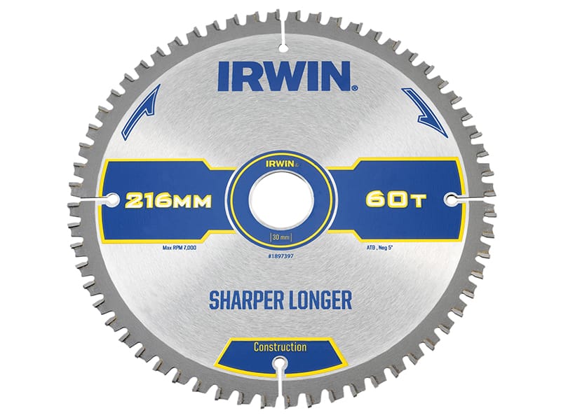IRWIN® Construction Mitre Circular Saw Blade 216 x 30mm x 60T ATB/Neg