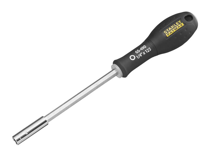 This Stanley Fatmax® Bit Adaptor is constructed from heavy-duty carbon silicon steel for added strength, performance, and longer product life. It has a large soft-grip, tri-material ergonomic handle designed to reduce fatigue and increase comfort in repetitive applications.